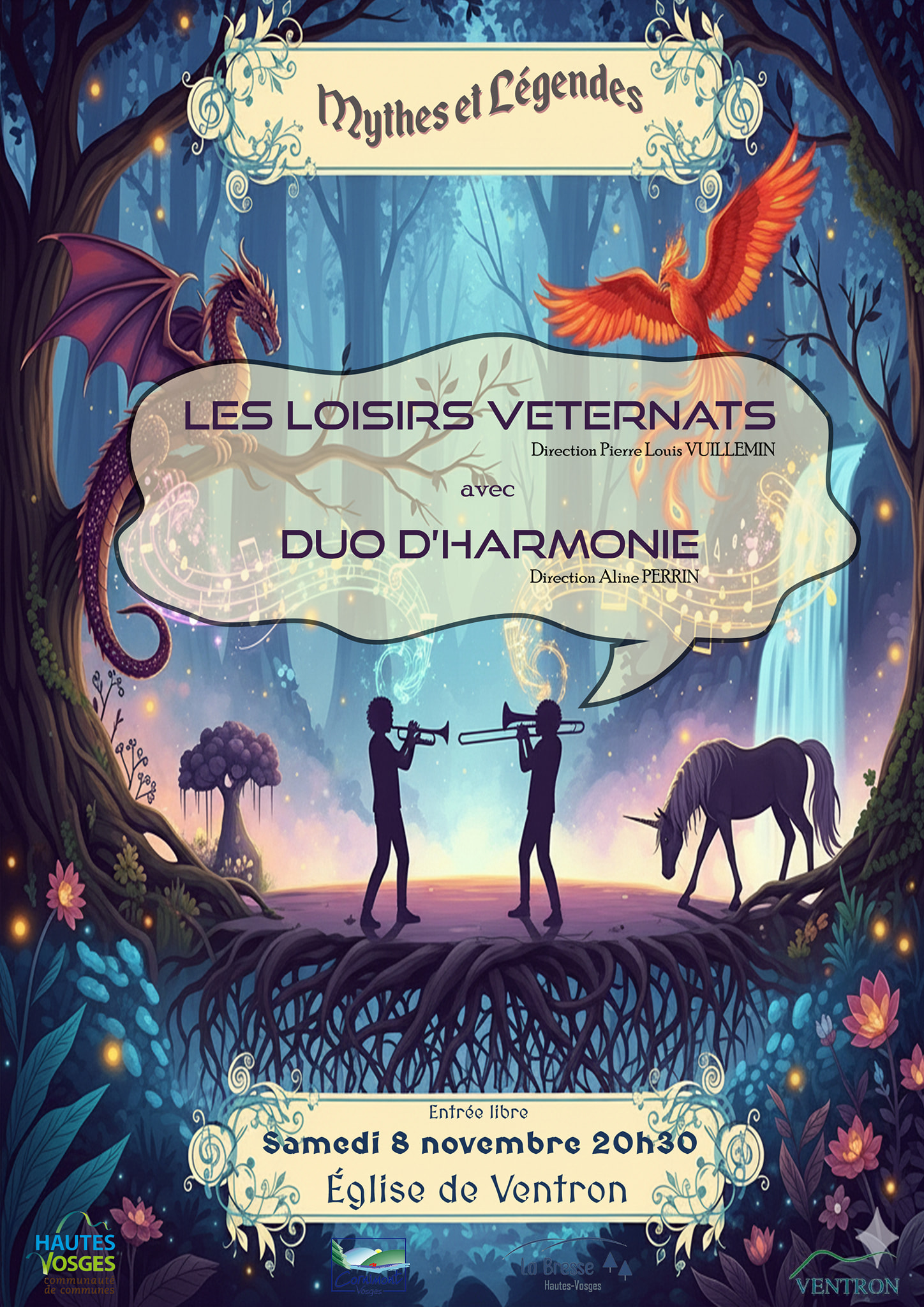 Concert Loisirs Véternats avec Duo d’harmonie 8 novembre à Ventron + Ajouter à mon Agenda Google + iCal / Outlook export 00 jours 00 heures 00 minutes 00 secondes Date Nov 08 2025 Lieu Eglise Ventron Organisateur Loisirs véternats Partagez cet événement
