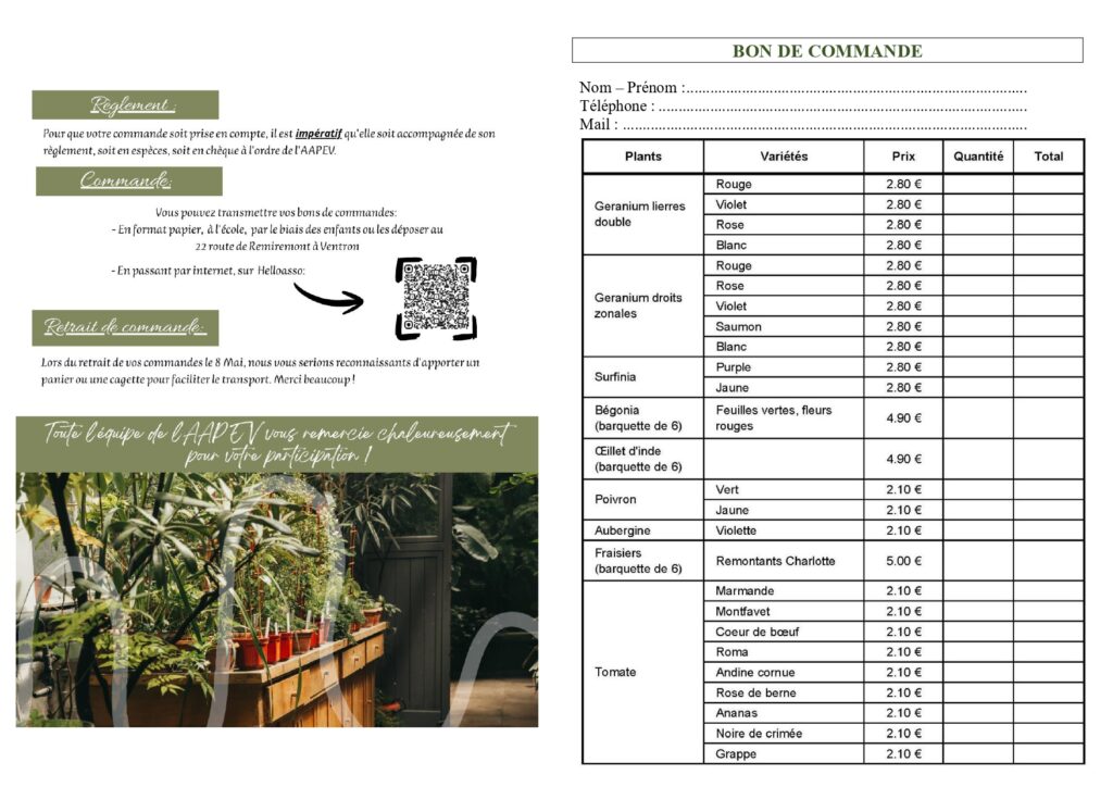 Vente de plants – Commandes