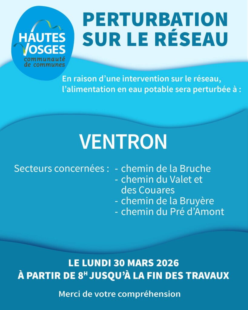 INFO PERTURBATION RÉSEAU EAU CCHV